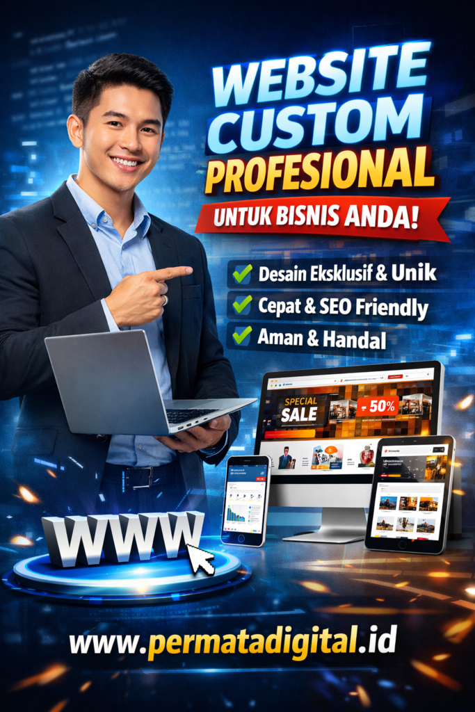 Di era digital seperti sekarang, website bukan lagi sekadar pelengkap, tapi sudah jadi wajah utama bisnis Anda di dunia online. Sayangnya, masih banyak website yang terlihat “itu-itu saja”, tidak mencerminkan karakter brand, dan akhirnya gagal menarik perhatian calon pelanggan. Di sinilah jasa pembuatan website custom hadir sebagai solusi terbaik. Website yang dibuat khusus sesuai kebutuhan Anda akan tampil lebih profesional, unik, dan pastinya lebih efektif dalam mendatangkan peluang bisnis.